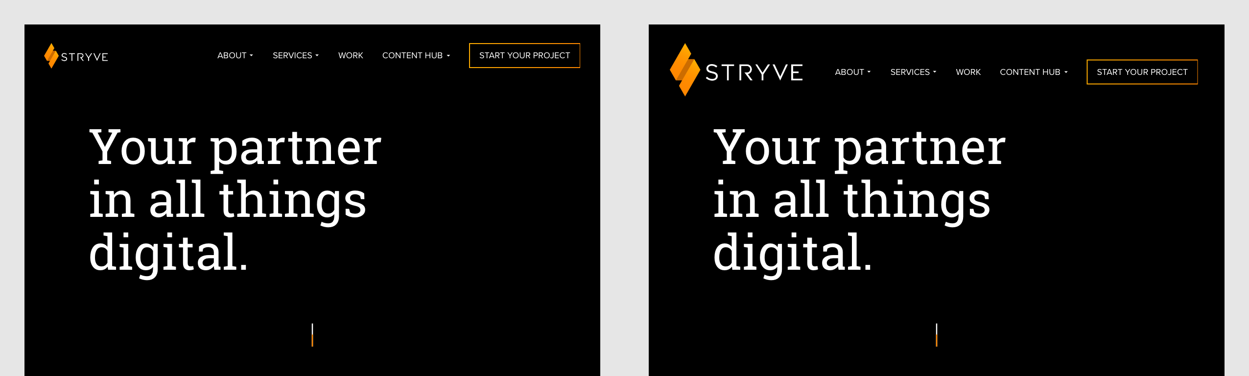 In the first layout, I emphasized the main statement, “Your partner in all things digital”, and in the second, I made the logo two times its original size. As you can see, when the logo is increased in size, it begins to compete with the main statement and is uncomfortable to look at because your eye doesn’t know where to rest. This is because the layout now lacks hierarchy, which is the organization of elements based on importance or significance in a design.