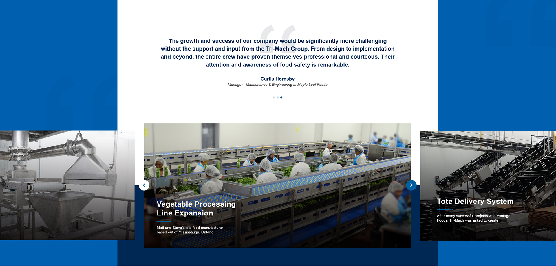 For over 35 years, Tri-Mach has been an industry leader in providing sanitary stainless steel solutions to the food, beverage, and pharmaceutical manufacturing industries. Tri-Mach prides itself on delivering best-in-class fabrication and custom installation services. They've earned a reputation for top-quality workmanship, a commitment to food safety, and technical expertise. Recognizing their website was not representative of this, they gave us a call.